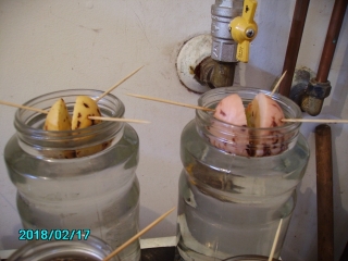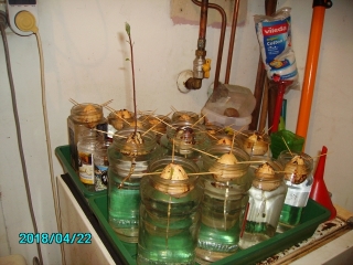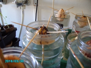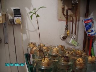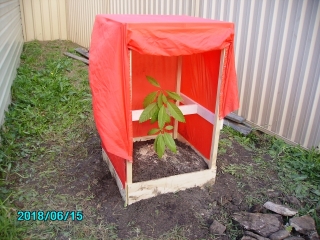 ![]() Preparing the Avocado for budding I have a fondness for Avocados, to the extent of eating half an Avo each day with half a jar of Anchovies. After paying up to $4.00 each for a poor quality Avo during the off-season, I wondered if it would be possible to grow my own. Since I was accumulating the seeds at the rate of three a week, I soon had plentiful stock to start experimenting. A few investigations on Google revealed the secrets of growing Avos: The seeds are initially sprouted whilst supported in a jar of water. Once they reach about 15-20cm (6-8") they are transferred to a pot and grown to a height of approximately 60cm (24"). Upon reaching this height they are then planted in the outside ground. There is a lot more to it than that and the following article will fill in the details. Utilise a warm, calm place in the house. I use a wooden platform over the second sink plus the top of the drinks fridge in the laundry. There is a westerly facing window with a blind that is opened all day to admit the afternoon winter sun. One outcome will be that you will develop a sense of patience, as the growing time will exceed four months until planting. ![]() An Avocado begin to sprout (1) A source of Avocado seeds, being the pits from Avocados bought at the store. Over the year you will notice the Avocado varieties will change. It is a good idea to collect as many various varieties as this will spread Avocado production across the seasons, rather than a single crop. (2) A decent sized jar to sprout the seeds. I find the cheap Woolworths Homebrand 200g coffee to be a decent drink and the jar to be an ideal size for propagation of the seeds, due to a requirement for a deep feeder root. (3) Toothpicks at three per seed for support in the jar. (4) Water to fill the jar. Tap water is quite OK and should be changed weekly or if slightly cloudy. (5) A 4 to 5 litre pot to grow the avocado once it has reached a height of 20cm. I buy the Decor brand 17cm self watering pot from Bunnings for $4.98. The Coral coloured one is quite pleasant, but costs $6.00. (6) Seeding mix for the potted plant. I buy the Osmocote 25 litre Professional Seed And Cutting Potting Mix from Bunnings at $11.49. This will adequately supply 15 plants in pots. (7) Liquid Fertiliser for the potted plant. I buy the Seasol 2.4L Seaweed Health Tonic Concentrate from Bunnings at $20.63. When watered down to a 4% solution in water, this makes 100 litres and goes a long way. (8) A squeeze bottle for administering the Liquid Fertiliser. Available from Woolies or Bunnings for a few dollars. (9) Potting mix for the planted plant. I buy the RichGro 25 litre All Purpose Potting Mix from Bunnings at $3.95. This will require three bags to supply the 75 litres needed to plant a single Avocado in a raised bed. (10) Fertiliser for the planted plant. I buy the RichGro 15 litre Blood and Bone from Bunnings at $26.98. A litre or two is applied to the planter box for each layer of potting mix. Another effective fertiliser is worm farm soil. (11) Clay Breaker for the planted plant. I buy the Richgro 15kg Natural Gypsum Clay Breaker from Bunnings at $9.76. Two litres is required for each plant under a 60cm x 60cm planter box. This prevents the tap root becoming clogged in the clay to prevent the absorption of nutrients and kill the plant. (12) An 'Avocado House' is a planter box I designed as a protective enclosure and raised bed. It can be made cheaply from a chopped up pallett plus four 1.2m long 19mm x 19mm Pine poles from Bunnings. ![]() Avocados budding en mass (a) Remove the Avocado seed and set aside for a few weeks to dry out and shrink slightly. (b) Peel the shell from the Avocado by delicate use of a toothpick to prise up and remove sections. Do not use a knife, as this will will score the surface and introduce an entry for fungus and rot. (c) Hold the Avocado pointy end up. This is where the stalk will appear and the feeder root will appear from the flat bottom. Check the seed out for possible split lines (indented fold). (d) Insert three toothpicks at 120 degree intervals and a slight upward angle about 2 - 3 cm down from the top of the Avocado. Ensure no toothpick is inserted in a split line. (e) Place the Avocado in the coffee jar supported by the toothpicks. (f) Fill the jar to halfway up the Avocado. (g) Now wait another month as nothing will seem to happen, especially in the colder winter months. ![]() The first leaves appear (a) After a 4 to 6 weeks the Avocado will split in half to a gap of 1cm. Both halves will be held together by a white growth. A white tap root will descend from the bottom, to absorb nutrients from the water and allow growth of the stalk. (b) After another few weeks the green stalk will start to appear above the top of the seed pod. It will be slow at first. Within a month it should have reached a spindly height of 20cm with three small green leaves. (c) After another few weeks the stalk will be 40cm tall with 3 tiny leaves at the top and small buds appearing along the stalk. (d) The stalk will then stagnate in it's growth due to developing a leaf system with 5 or more decent leaves at the top. (e) It will soon be time for planting in a 5 litre pot. ![]() An Avocado planted in a pot (a) Prepare the pot by drilling a hole in the main base section to accommodate the tap root entering the lower water bath. (b) Very gently place the Avocado in the pot, whilst manoeuvring the long tap root into the hole. (c) Fill the pot with potting mix to a depth of 10-12 cm and set the Avocado almost fully buried. This gives room for the fibrous root system to develop. (d) Fill the bottom watering container with water and replace weekly. Every few days give the base of the plant at least 20 squirts of liquid fertiliser to enable the leaf system to develop. (e) Now wait another few months for the stalk to grow up to 60cm and the leaf system to multiply in number and enlarge up to almost 20cm. (f) Once spring has arrived the vicissitu