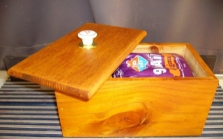 standard loaf and the inside is unstained and lined. It kept bread fresh for about a week and a half in winter.